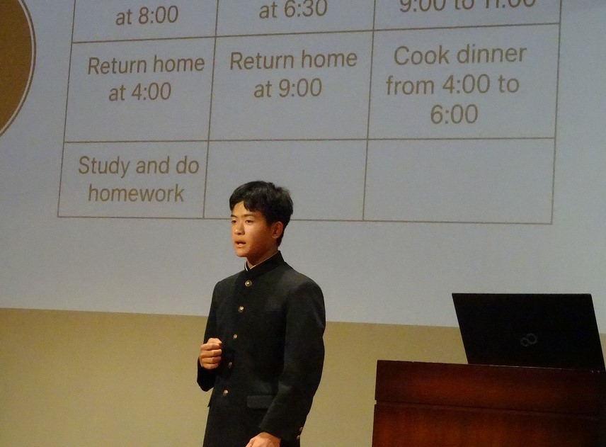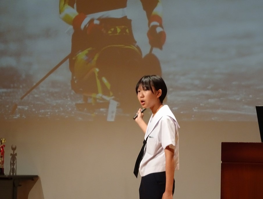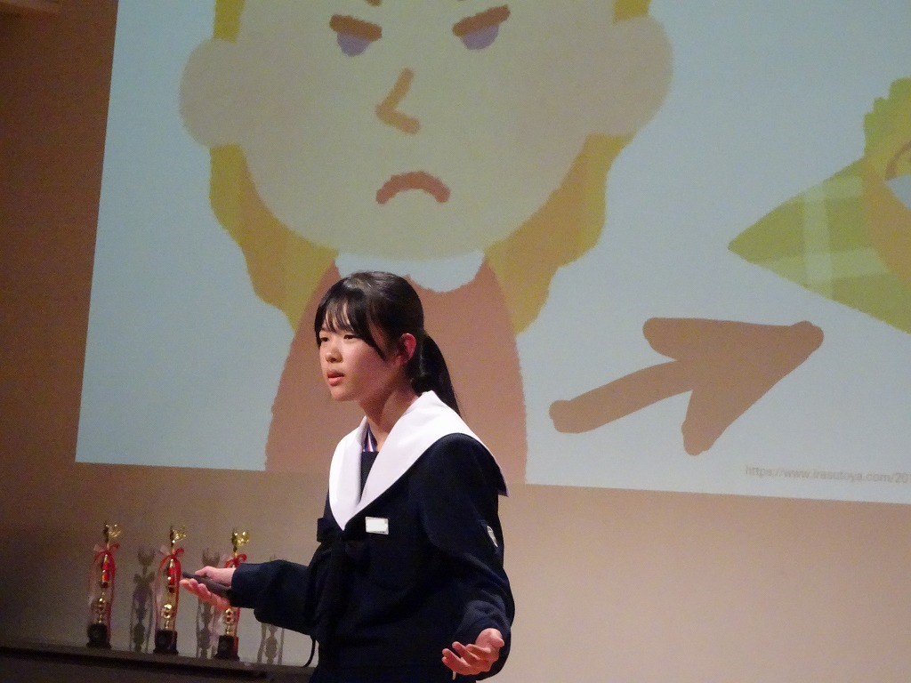 来賓の講師の方に審査及び講評をしていただきました。参加した生徒にとって、英語による表現力と、コミュニケーション能力を高めるよい機会となりました。また、安城市内の仲間の思いや考えを聞くことで、視野を広げ、これからの英語学習への意欲をさらに高めました。